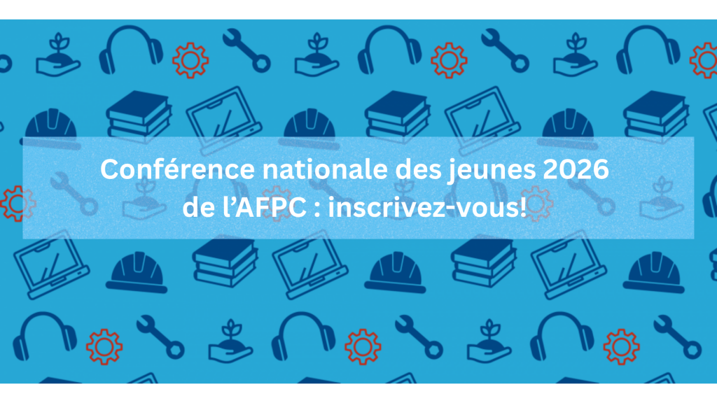 La prochaine Conférence nationale des jeunes de l’AFPC aura lieu du 7 au 9 novembre à Ottawa. Le thème de l’édition 2026 est « Jeunesse syndicale : s’affirmer, redéfinir les règles ».